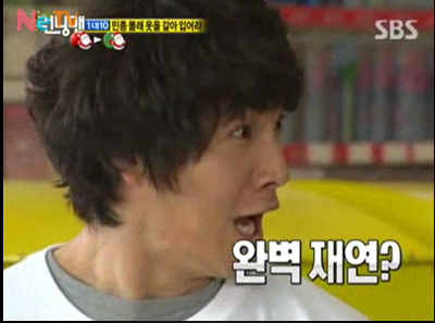 関西ではお馴染みのグリコのランニングマン、韓国のランニングマンのお目に留まったようです。イ・ユミさんはこういう話は逃しませんからね~(笑)。ちゃんとJKに指図して同じポーズを取らせました。言われるままに素直に従うジョングク君、両手を挙げてきちんとポーズしてくださいました。